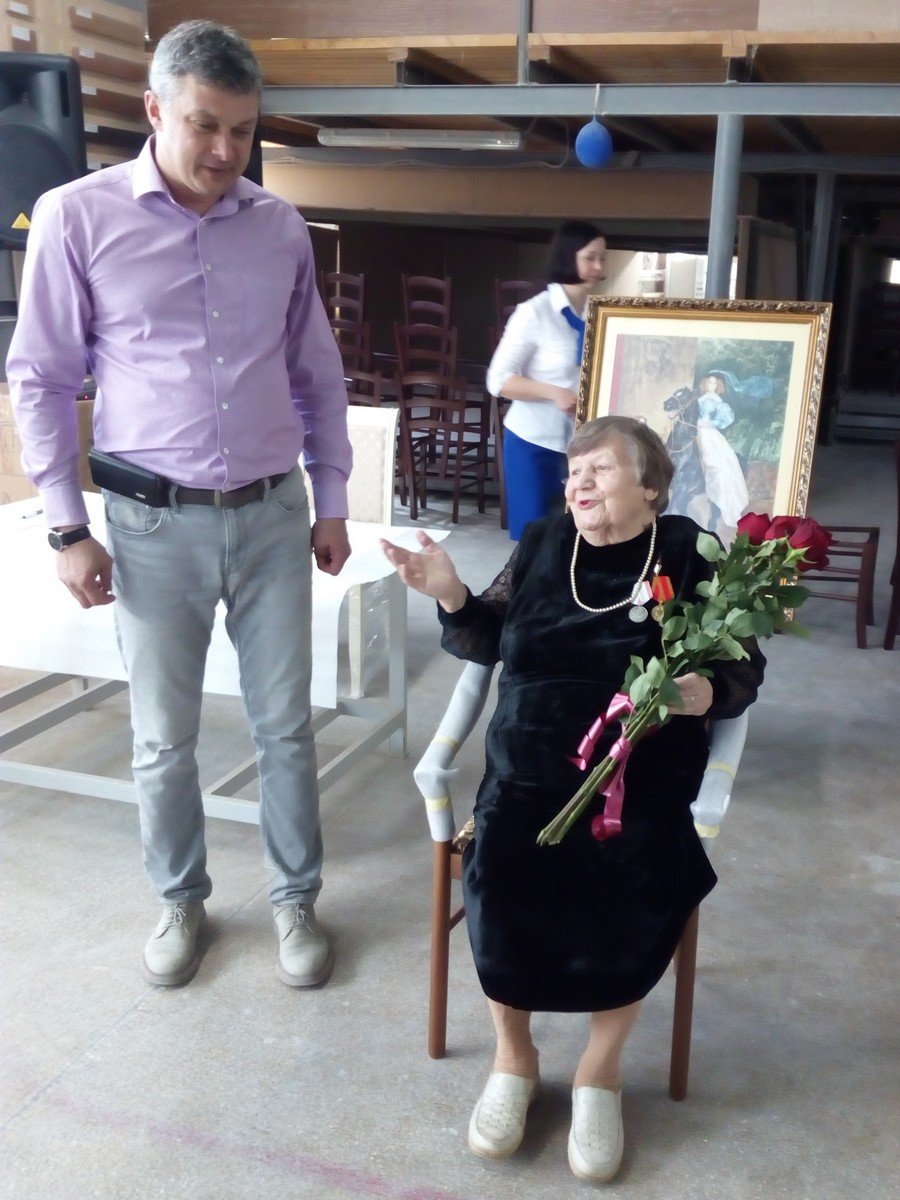 С приветственным словом  на встрече выступил заместитель директора по производству Дмитрий  Евгеньевич Яковлев. Он отметил заслуги  этой скромной  женщины, в детском возрасте пережившей все тяготы военного лихолетья.